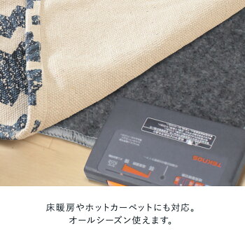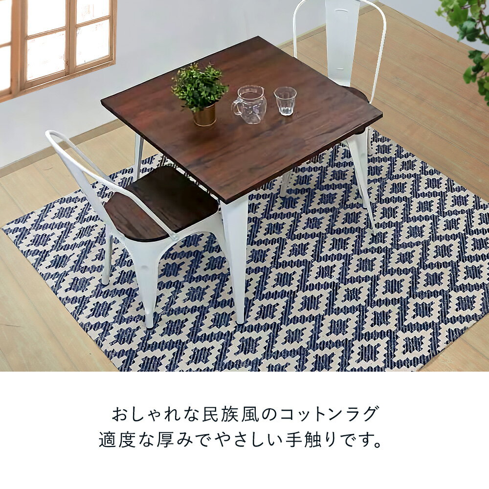 ラグ 185×185cm ネイビー | マット キャンプ アウトドア カーペット 寒さ対策 床暖房対応 ホットカーペット対応 オールシーズン おしゃれ フロアマット じゅうたん インド綿 絨毯 洗える コットンラグ コットン ラグマット ベランダ バルコニー フロアーマット ウッドデッキ