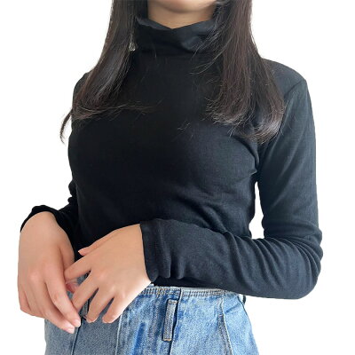 ハイネック タートルネック 岩盤浴 遠赤外線 Tシャツ モックネック クルーネック 長袖 無地 ロンT ストレッチ 秋 冬 あったか 保温 綿100% 保温 ヒート インナー ウォーマー 下着 パジャマ カットソー ブラック 重ね着 暖か アウトドア