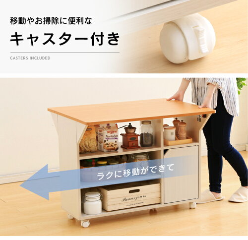 キッチンワゴン キャスター付き キッチン 収納 キッチン収納 折り畳み 両扉付きキッチンワゴン送料無料 ワゴン カウンター 扉 キッチンカウンター 作業台 カート おしゃれ 折りたたみ バタフライ テーブル 木製【D】