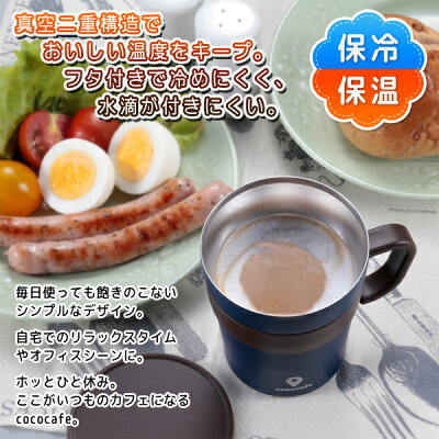 cococafe 真空二重構造 フタ付き取手付きマグカップ 250ml 真空二重構造でおいしい温度をキープ。