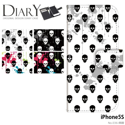 スマホケース iPhone5S 手帳型 ケース アイフォン デザイン 髑髏 スカル ドット ガイコツ ストラップホルダー