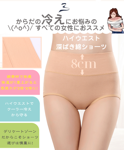 【特徴】 1.冷えから来るむくみ・生理痛・頭痛や肩こり… お腹から腰まですっぽり包むハイウエストショーツで解決! しっかり保温し冷えから守ります♪