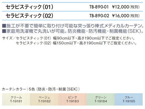 TB-890-01 セラピスティック(01) 施工が不要で簡単に取り付け可能な突っ張り棒式メディカルカーテン。