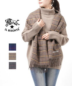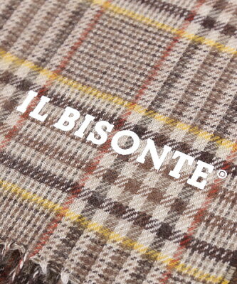 イルビゾンテ(IL BISONTE) フリンジ チェックマフラー ホワイトロゴストール・54212309481-0062102(メンズ)(レディース)(■■)