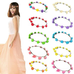【10色】約12個コサージュ付ドレス花冠1本 約6個コサージュ付ドブレス(2本) 花かんむり ヘアアクセサリー ヘッドドレス フラワーティアラ クラウン フォーマル 女の子 子どもドレス 結婚式 キッズ 造花 文化祭、体育祭り イベント 舞台 ダンス