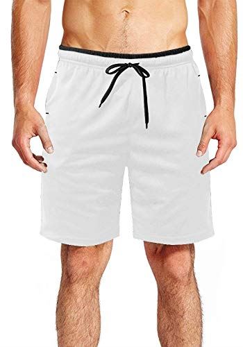 KEFITEVD ショートパンツ ランニング ハーフパンツ ジョギング 半ズボン ドライメッシュ メンズ ジムウェア 吸汗速乾 フィットネスパンツ 5分丈 トレーニングウェア ホワイト