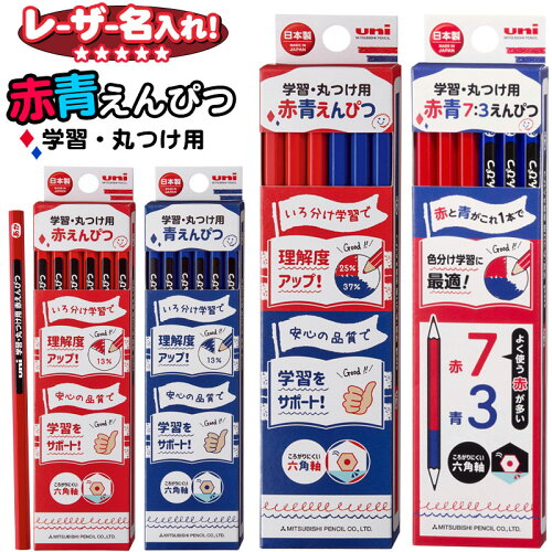 三菱鉛筆 uni学習 丸付け用 赤えんぴつ 青えんぴつ 赤青えんぴつ 丸つけ用 六角軸 12本入り【レーザー名入れ】 【6ダースまでネコポスもOK】名入れ 鉛筆 名前入り ネーム入り 赤青卒園 入学 記念品 贈物 プレゼント 小学生 l_c